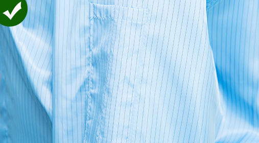 材料選用聚酯長絲纖維和進口全導電纖維混紡而成具有防靜電,防塵,不吸塵,不掉屑的特點